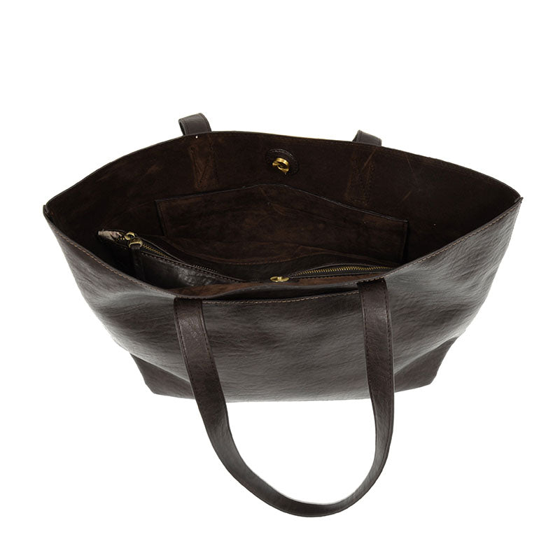 Crafted from rich buffalo grain vegan leather, this oversized Tote has a casual vibe. Three interior compartments enhance the organizational appeal, and the convenient front pocket keeps your phone, keys, and essentials within easy reach.
