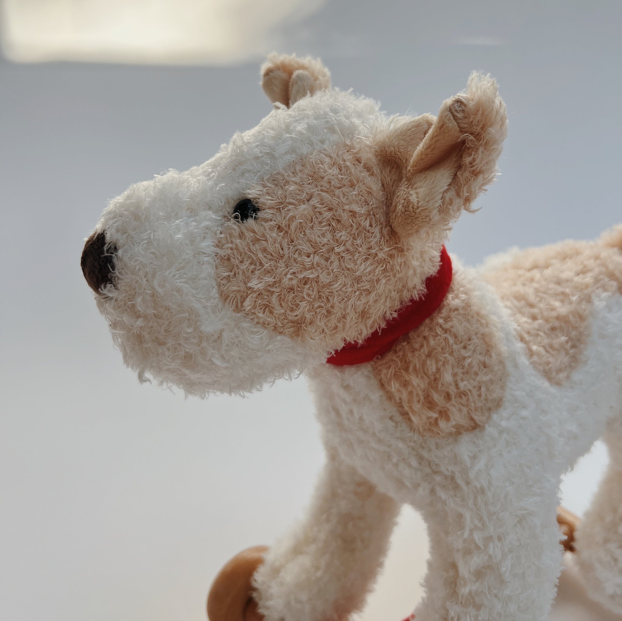 Here comes Eliot on his little wooden wheels! He is ready to follow his owner wherever he goes! A vintage look and a very soft fur to be loved and hugged.
