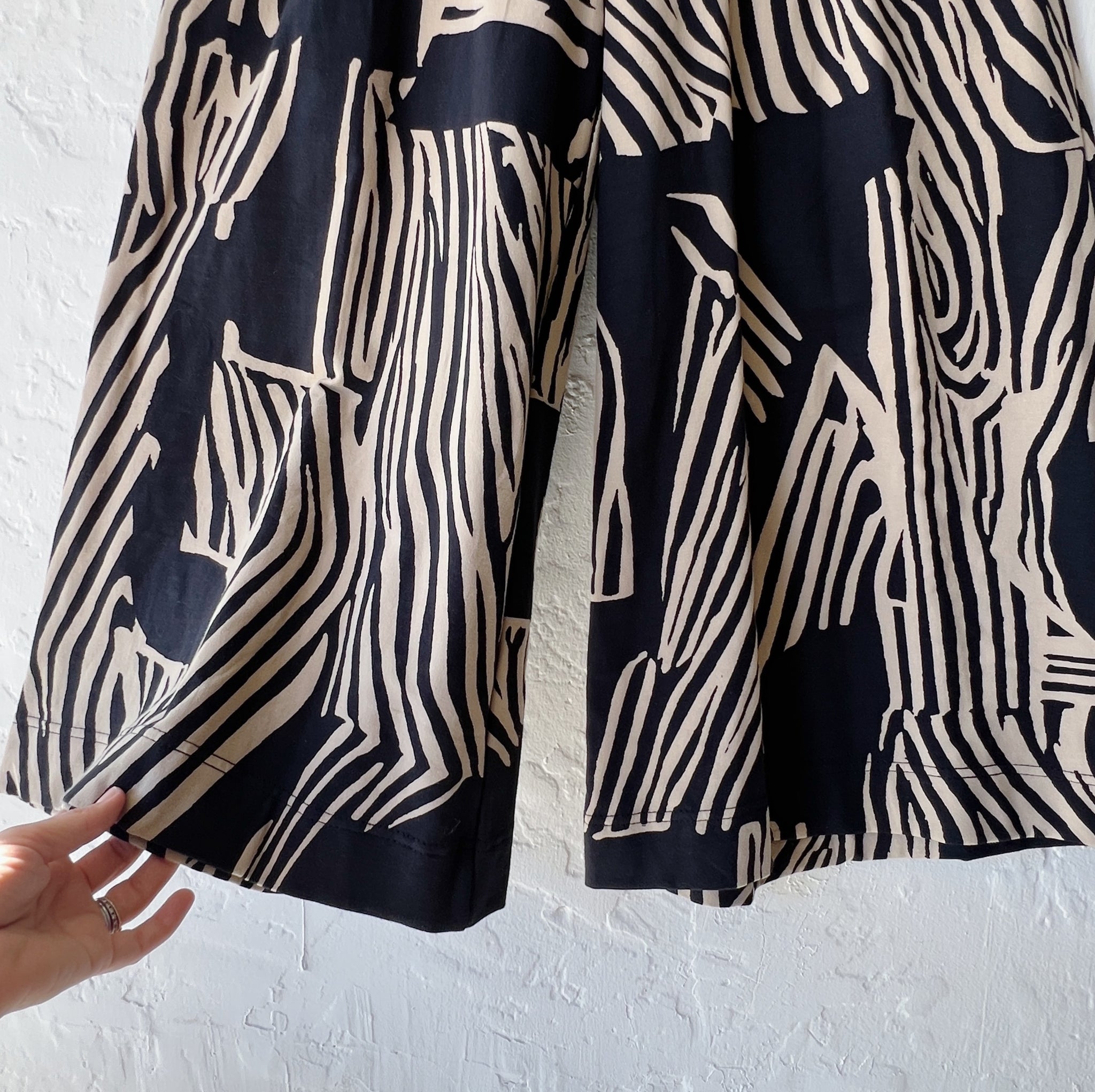 These knit cotton gauchos are perfectly chic and ultra comfortable. They feature an elastic waistband and pockets.