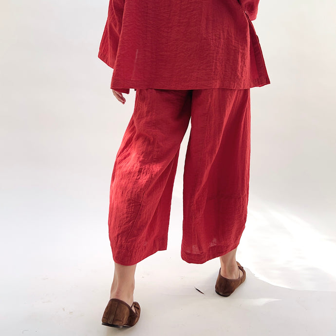 Eleven Stitch | Crinkle Travel Tucked Hem Pant in Pimento