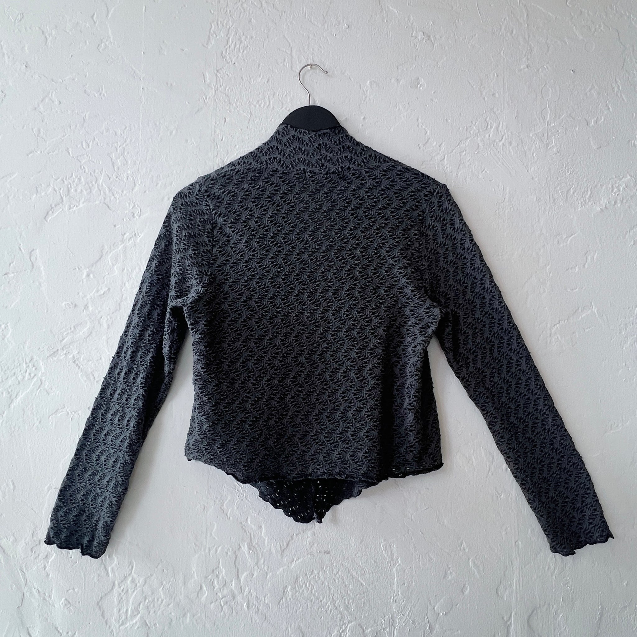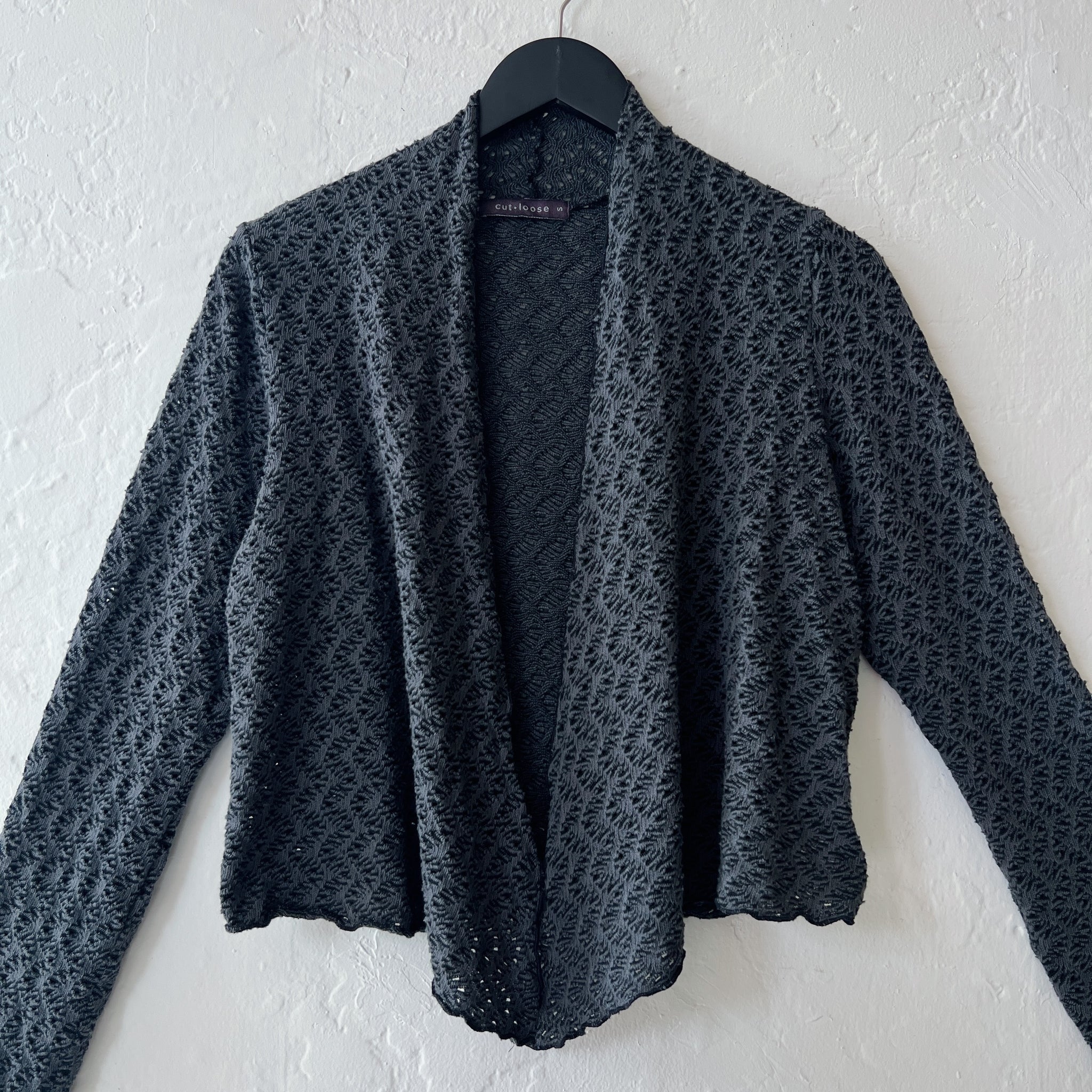 Cut Loose | Wavy Crochet Knit Cropped Cardigan in Gull