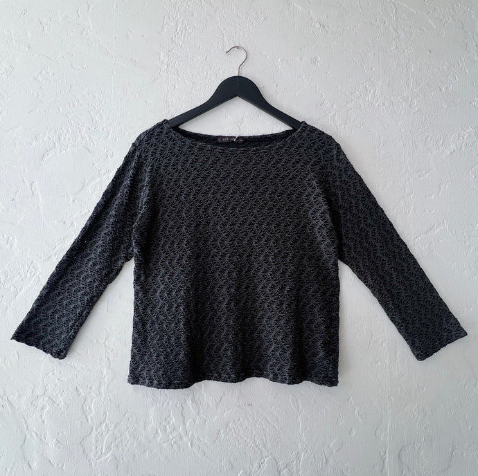 • Cut Loose | Wavy Crochet Knit 3/4 Sleeve Boatneck Tee in Gull