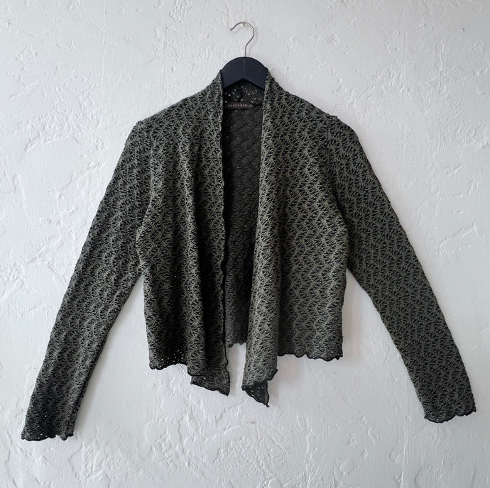 • Cut Loose | Wavy Crochet Knit Cropped Cardigan in Etan