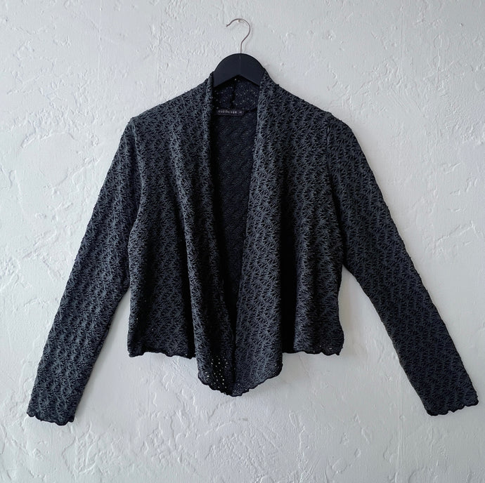 • Cut Loose | Wavy Crochet Knit Cropped Cardigan in Gull