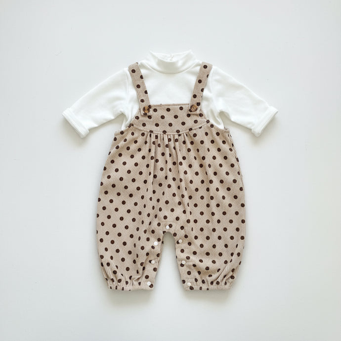 Polka Dot Corduroy Overalls & Mock Neck Top Set