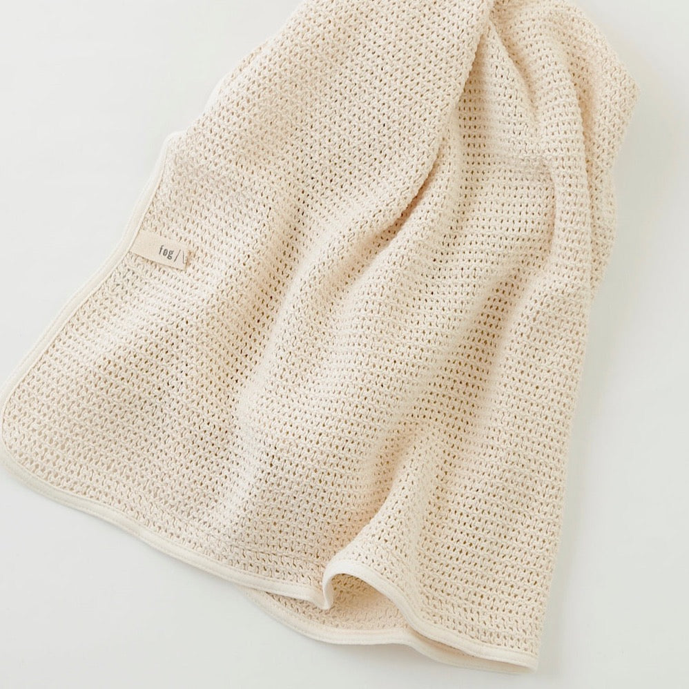A beautiful, 100% cotton knit blanket for the new baby in your life. Soft, dye-free, naturally ivory, you'll wish they made this in grown-up sizes.