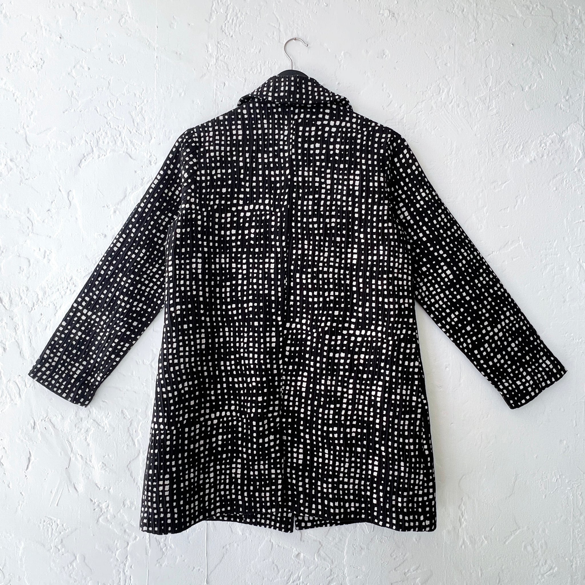 The Autumn Check Paris Car Coat from Habitat is a fresh fall jacket in cotton spandex double faced jacquard check. Lots of texture, great front pockets, a button front, and contrasting lining- make a statement with this easy transformational piece.