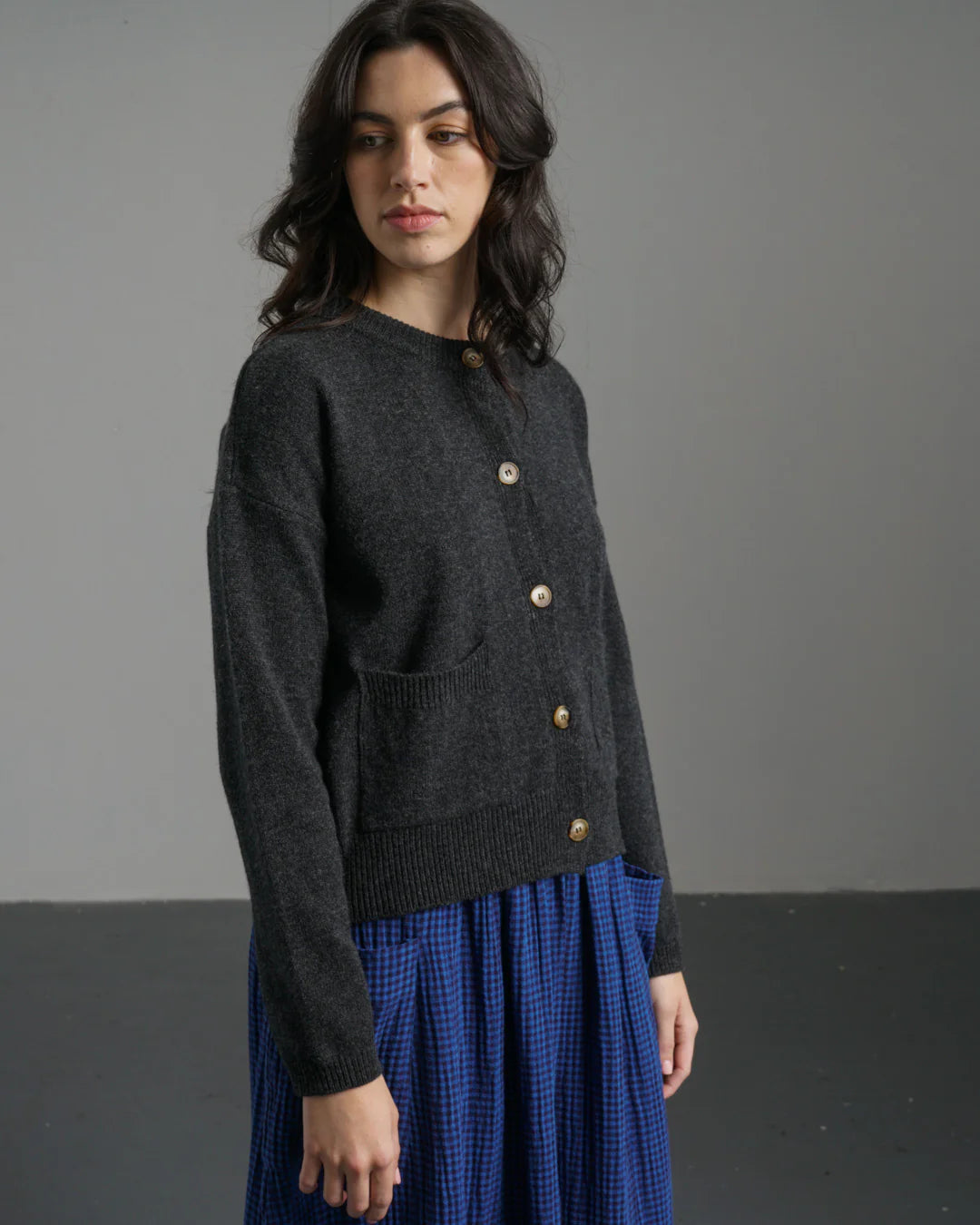 BIBICO | Mira Cropped Cardigan in Charcoal