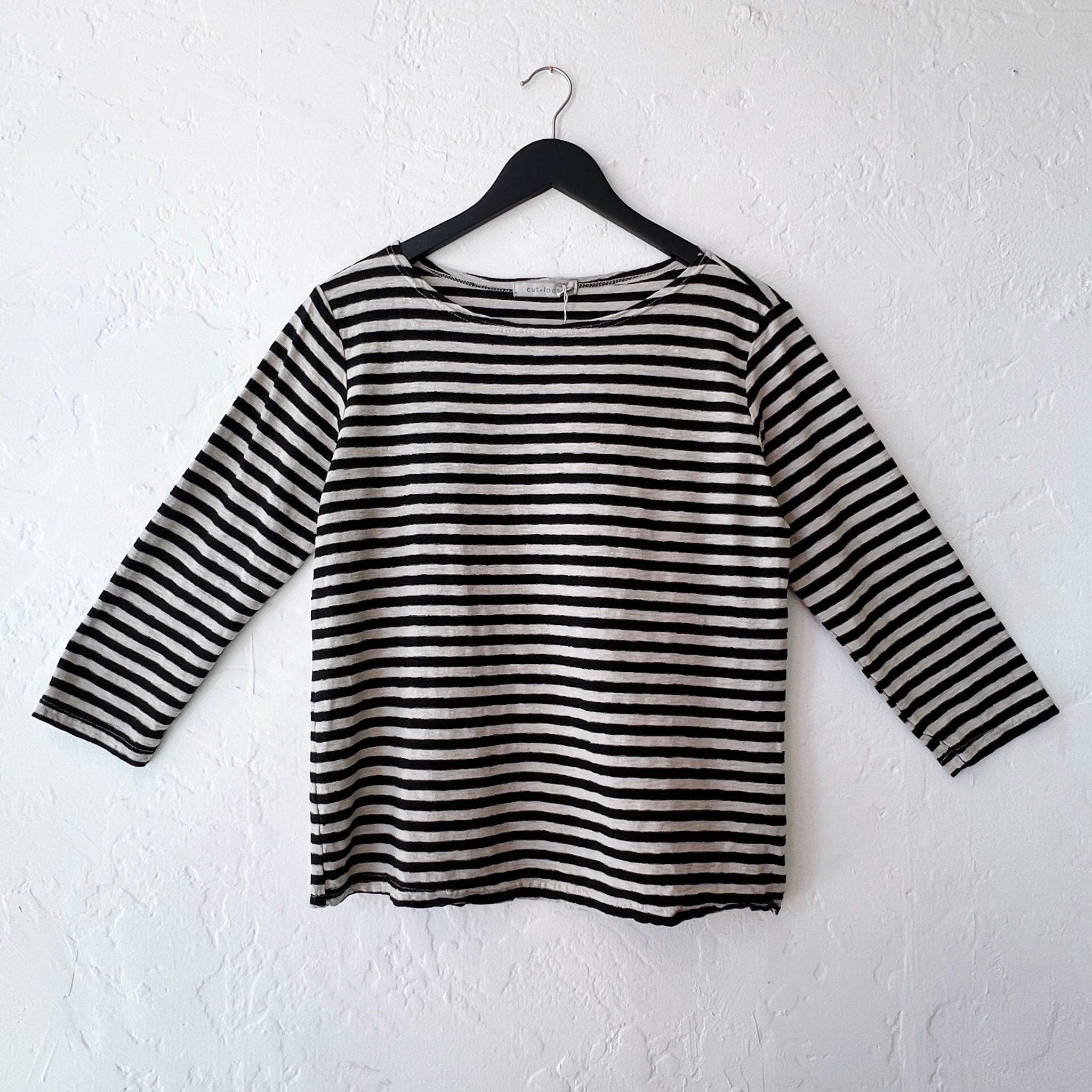 Cut Loose | 3/4 Sleeve Striped Boatneck Top in Moonbeam