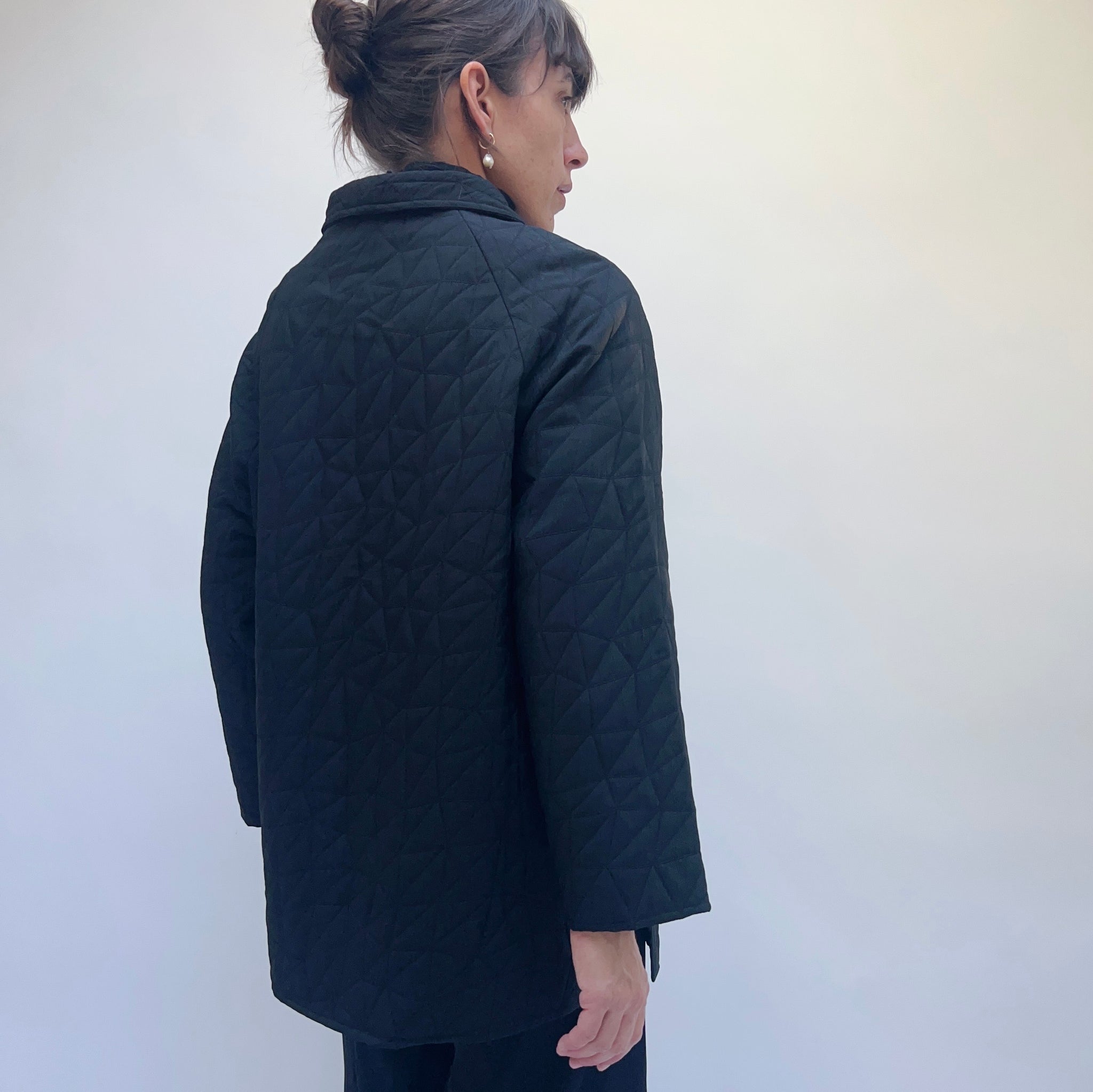 • Load image into Gallery viewer, Habitat | Kaleidoscope Quilt Swing Coat in Black