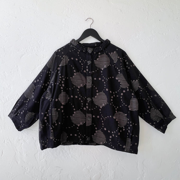 Cut Loose | Polka Dot Boiled Wool Zip Swing Jacket in Black