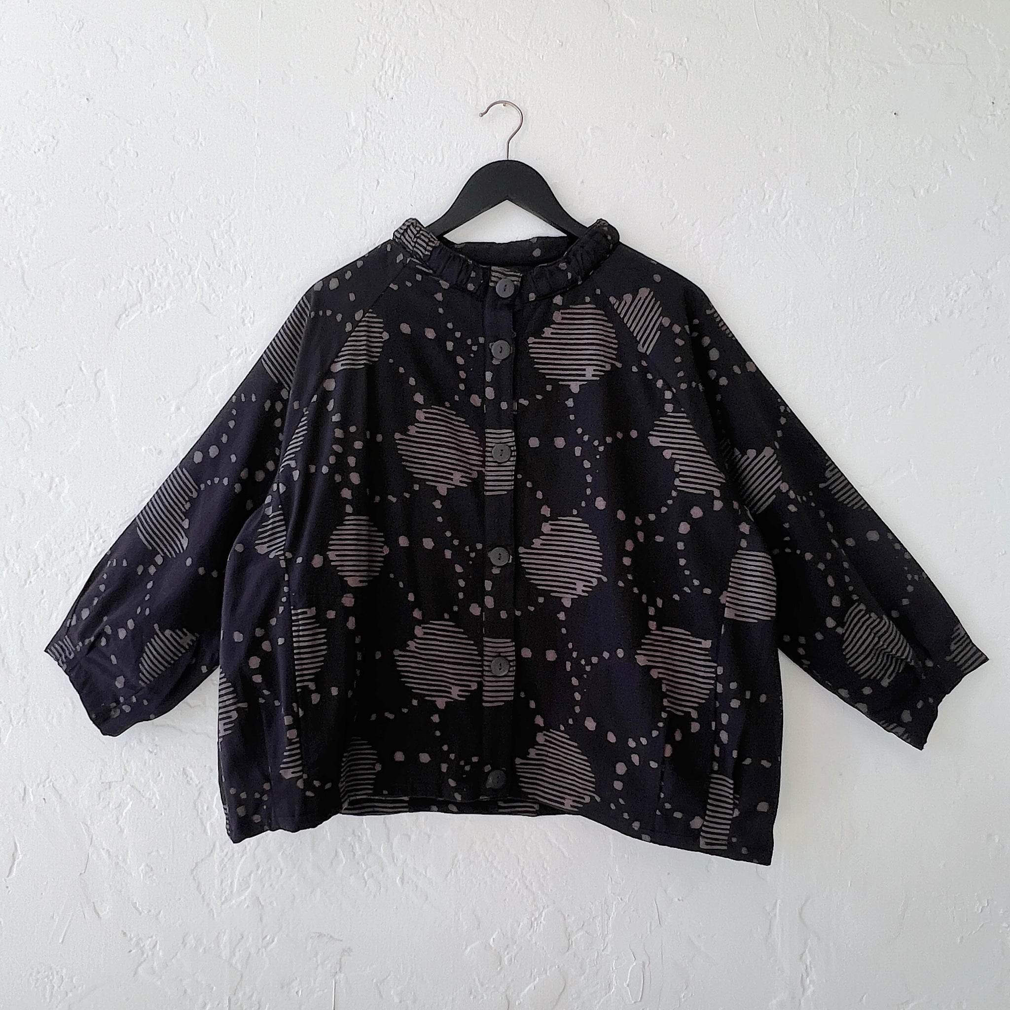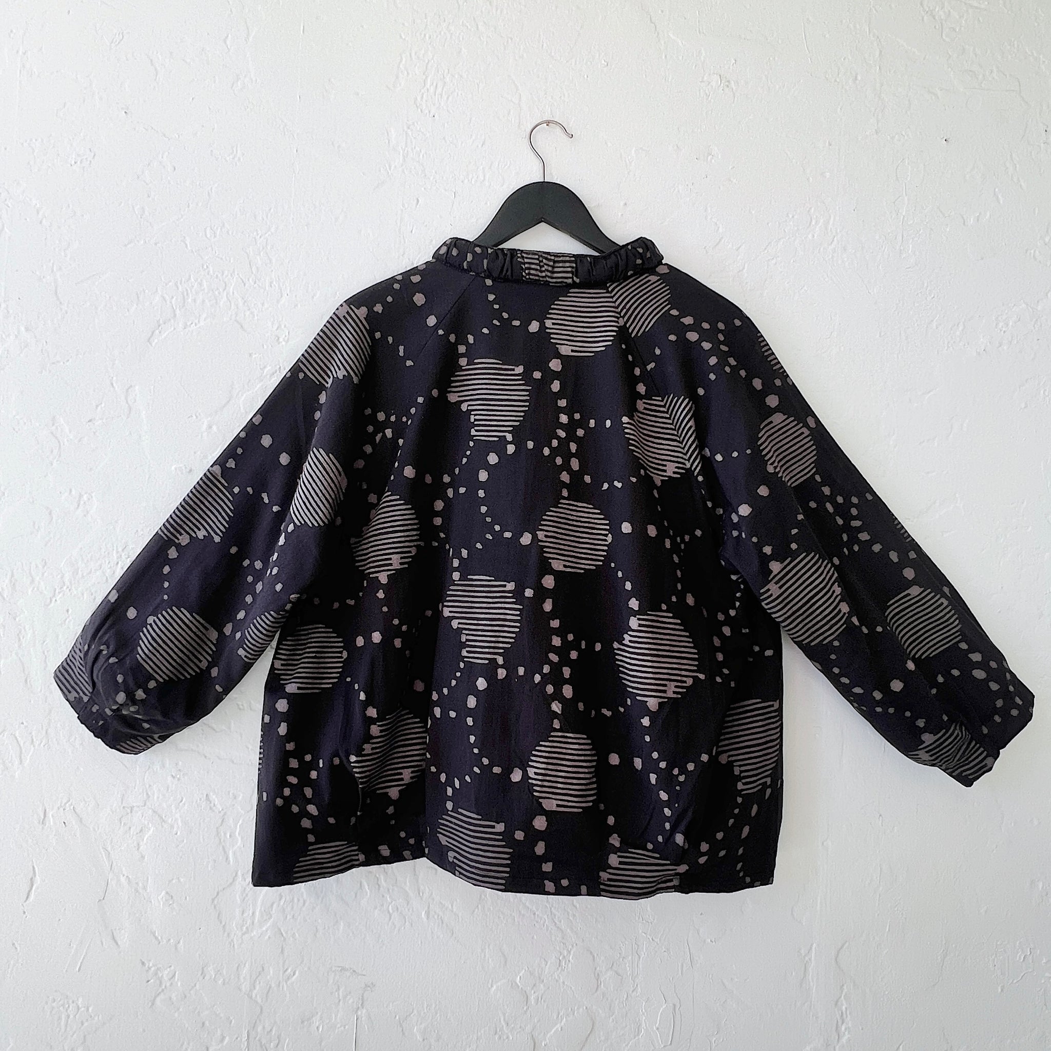 Mona Lisa | Ruched Collar Modern Circle Fleece Lined Jacket in Black