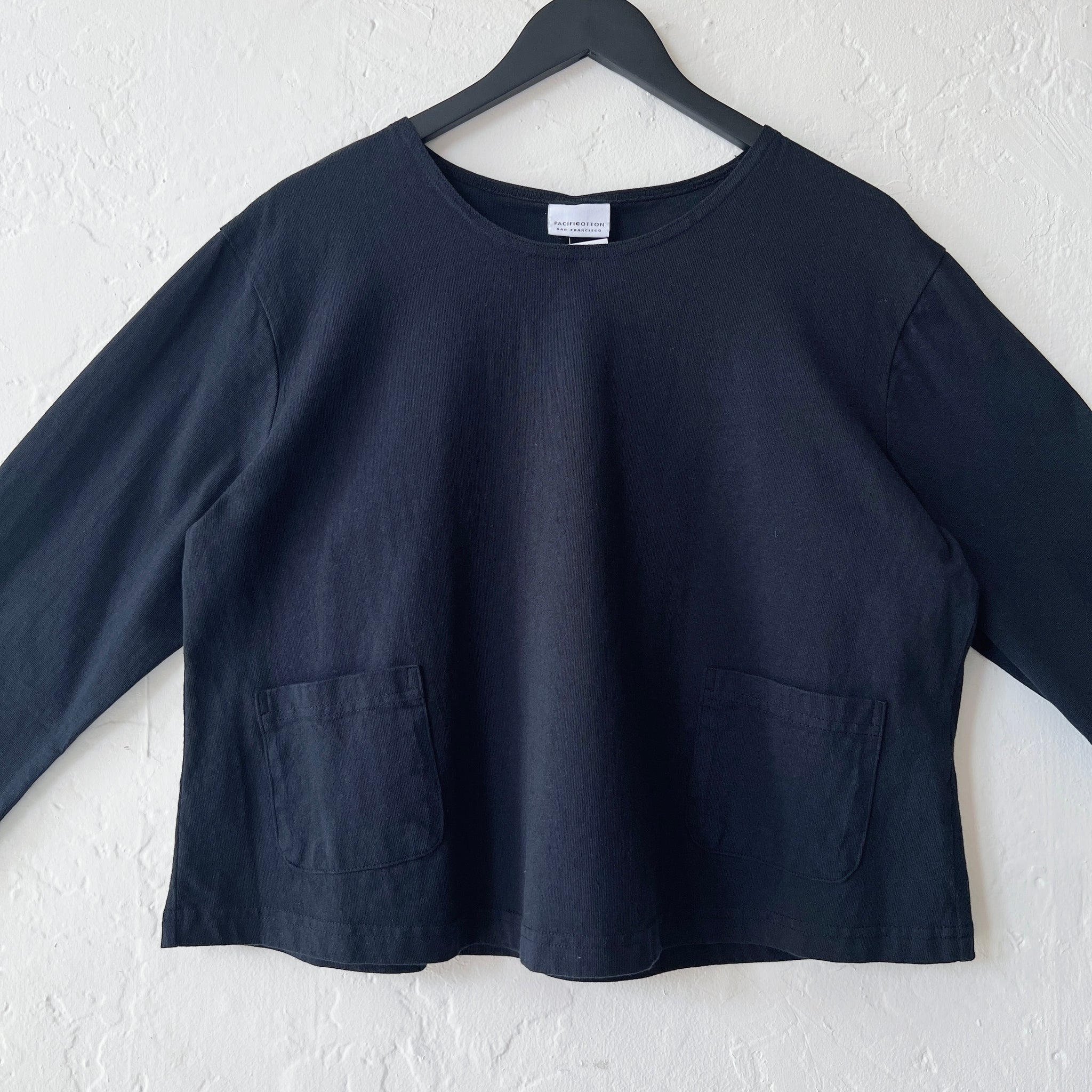 3/4 sleeve top with two front pockets in Pacific Cotton's signature long-lasting heavy weight cotton.