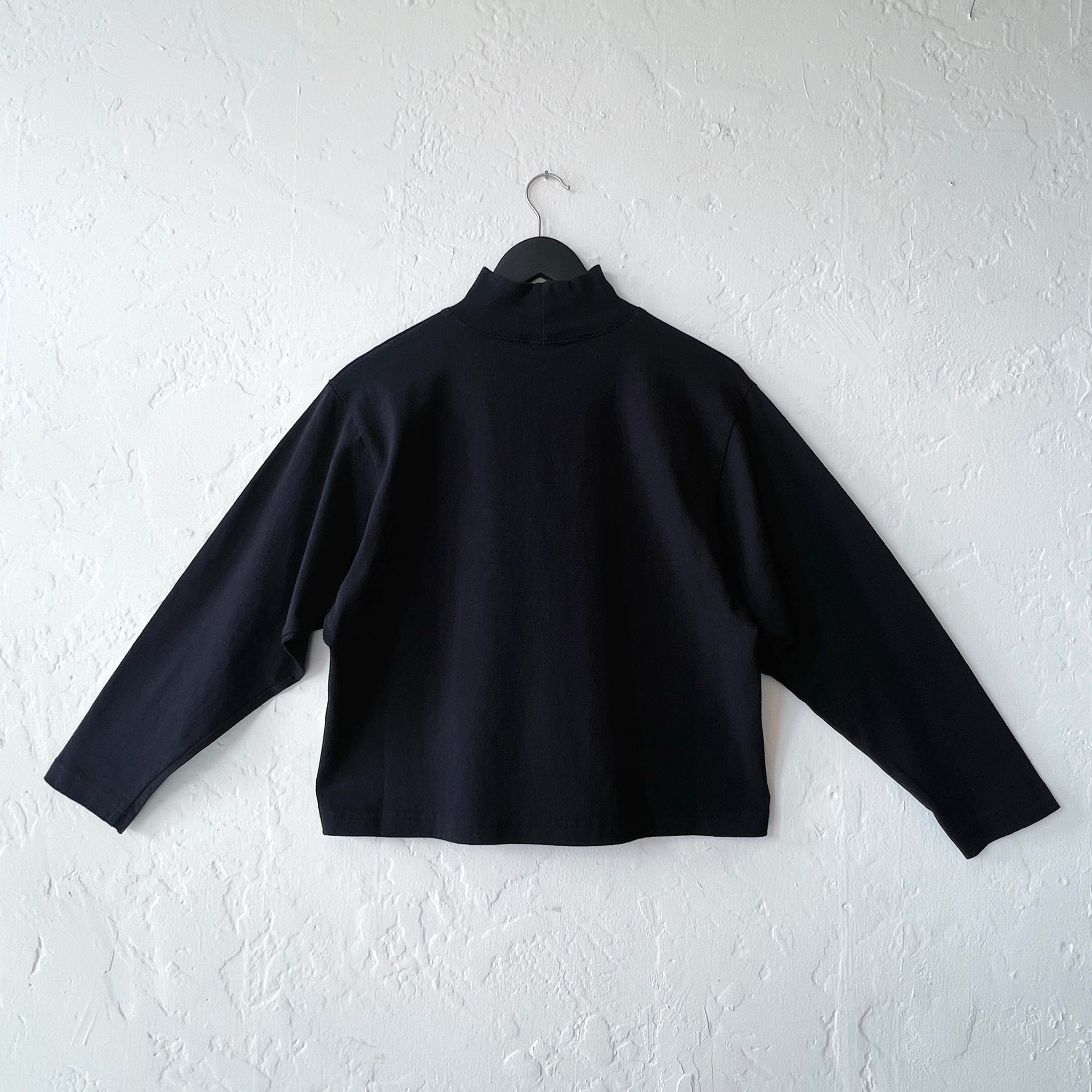 A slightly cropped, mock neck long sleeve top in Pacific Cotton's signature long-lasting heavy weight cotton.