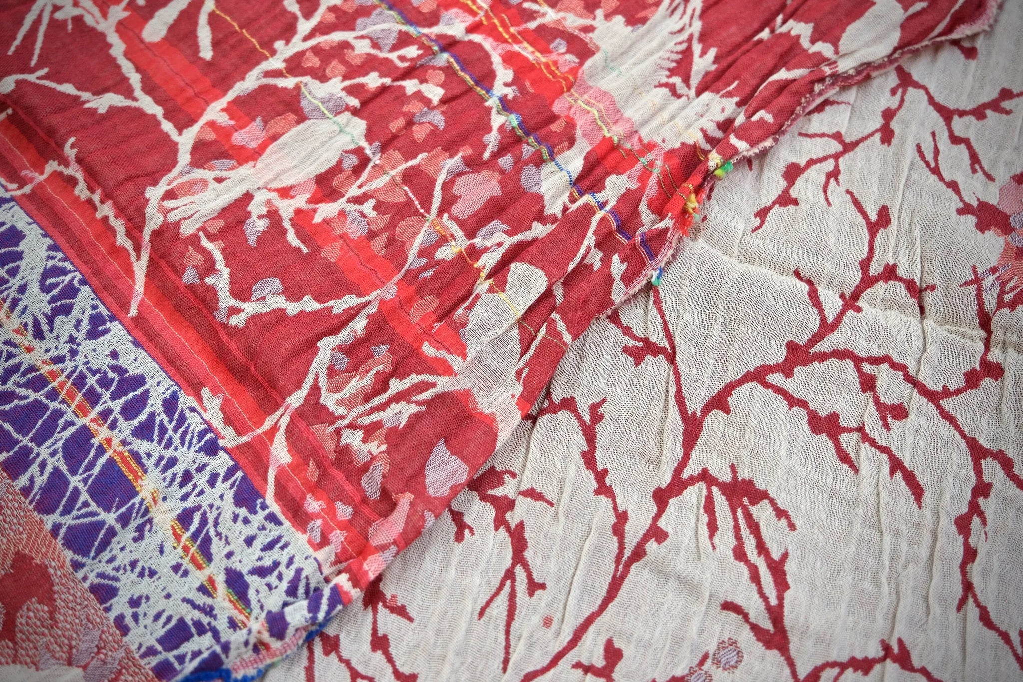 Létol scarf, crafted in France with certified organic/bio cotton (96% cotton & 4% recycled fibers). All-season reversible design, featuring artisanal Jacquard patterns and rich textures from interlaced colored threads (no prints).