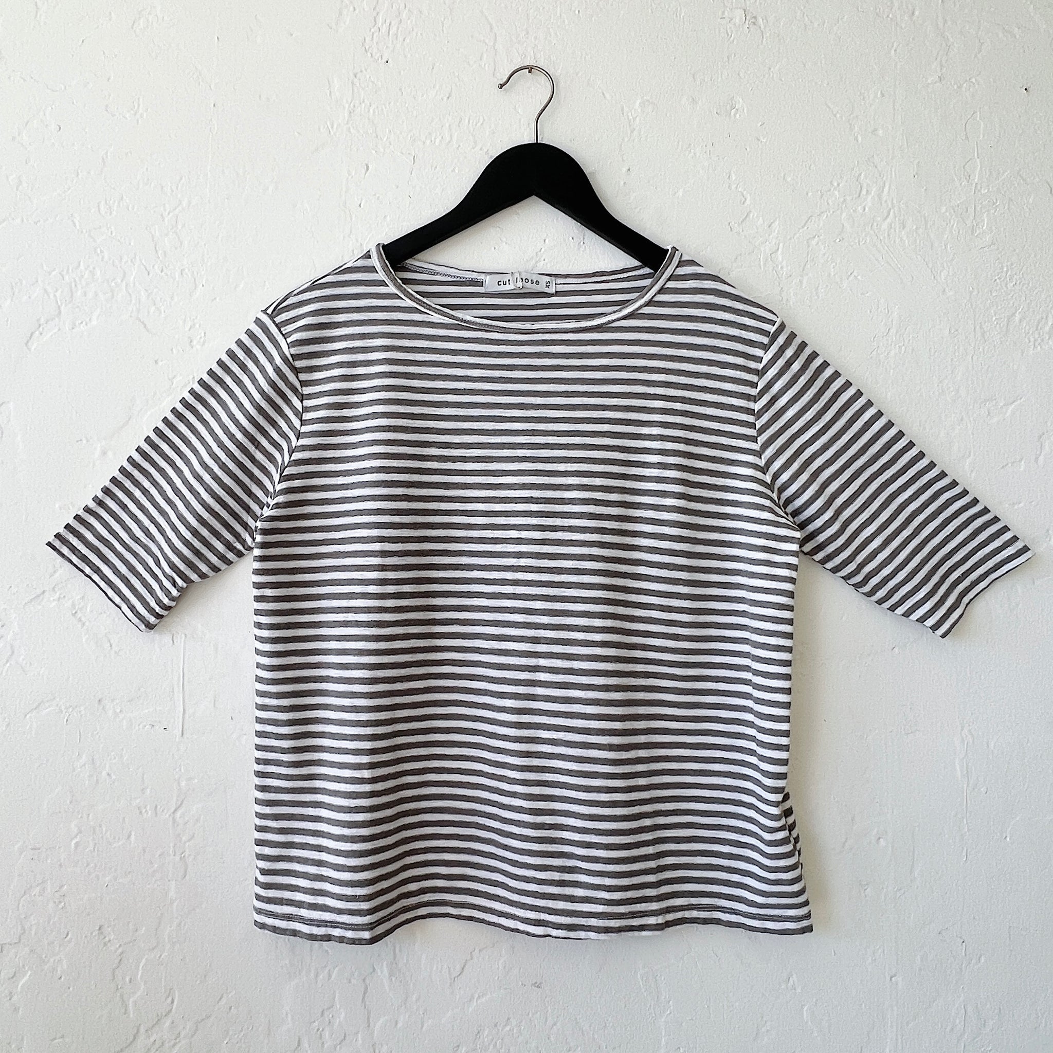 Cut Loose | Elbow Sleeve Top in Laundered Stripe