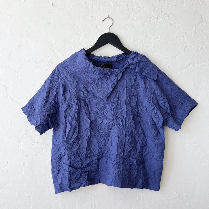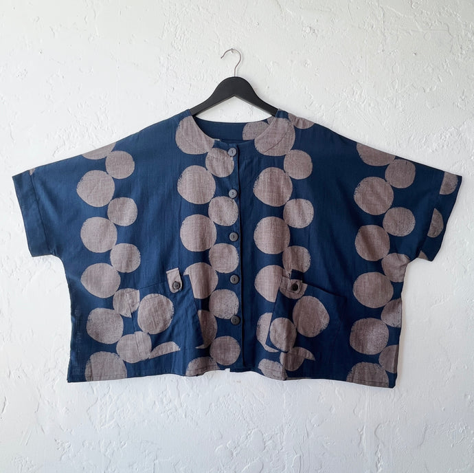 Mona Lisa | Corduroy Tuck Crop Jacket in Dark Blue Blossom Print