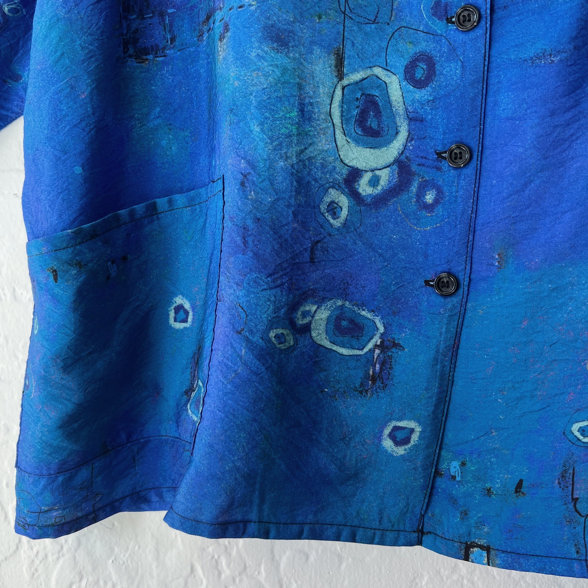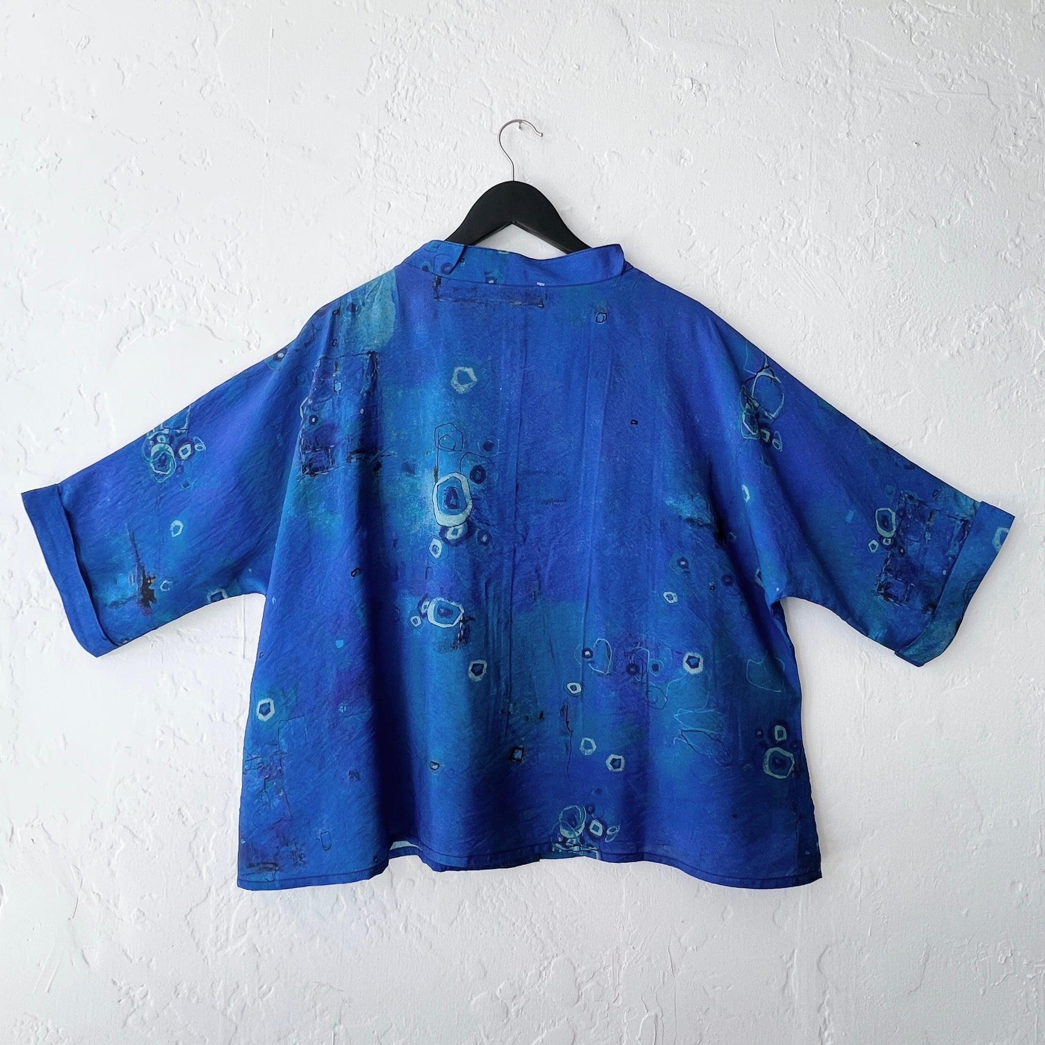 Abstract Mock Neck Button Down in Cobalt