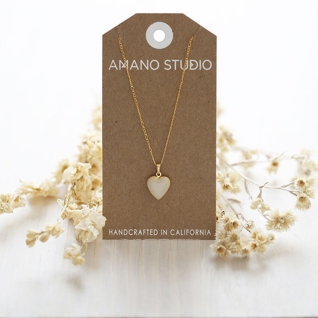 • Load image into Gallery viewer, Amano Studio | Enamel Heart Locket in Beige