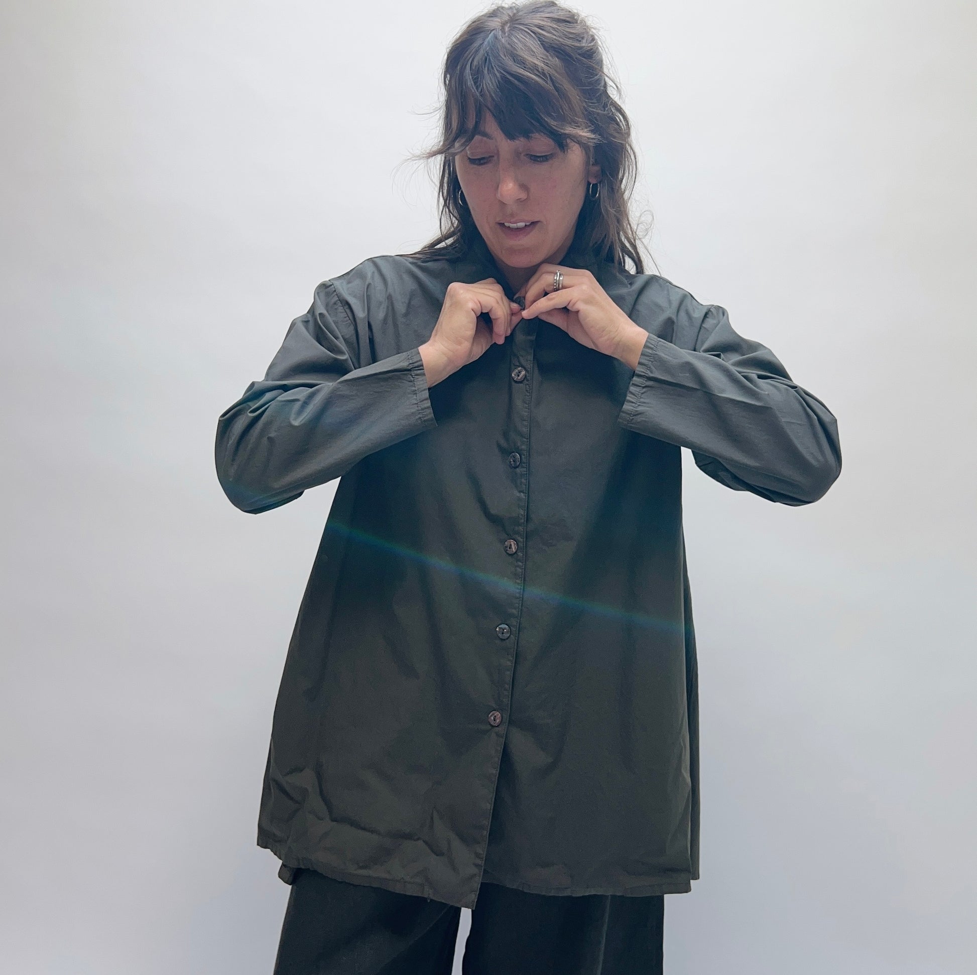 A lovely light top in soft cotton, with a crisp collar and shell buttons down the front.