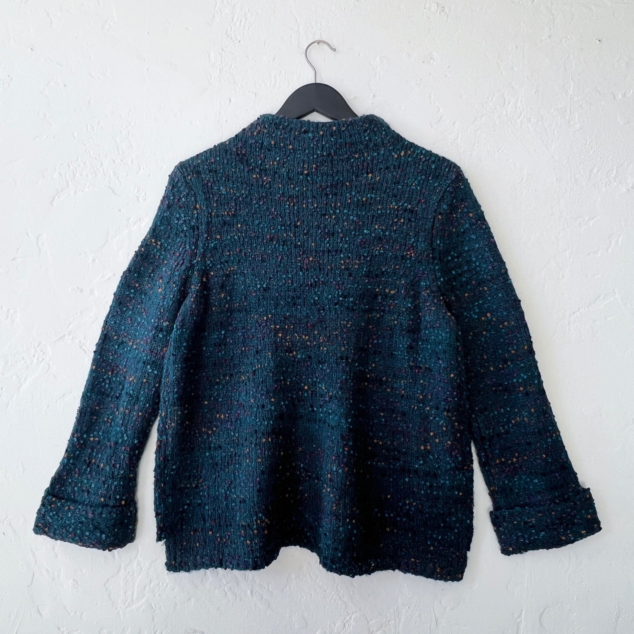 Marled yarns with pops of chenille creates a textured depth and rich color variation.