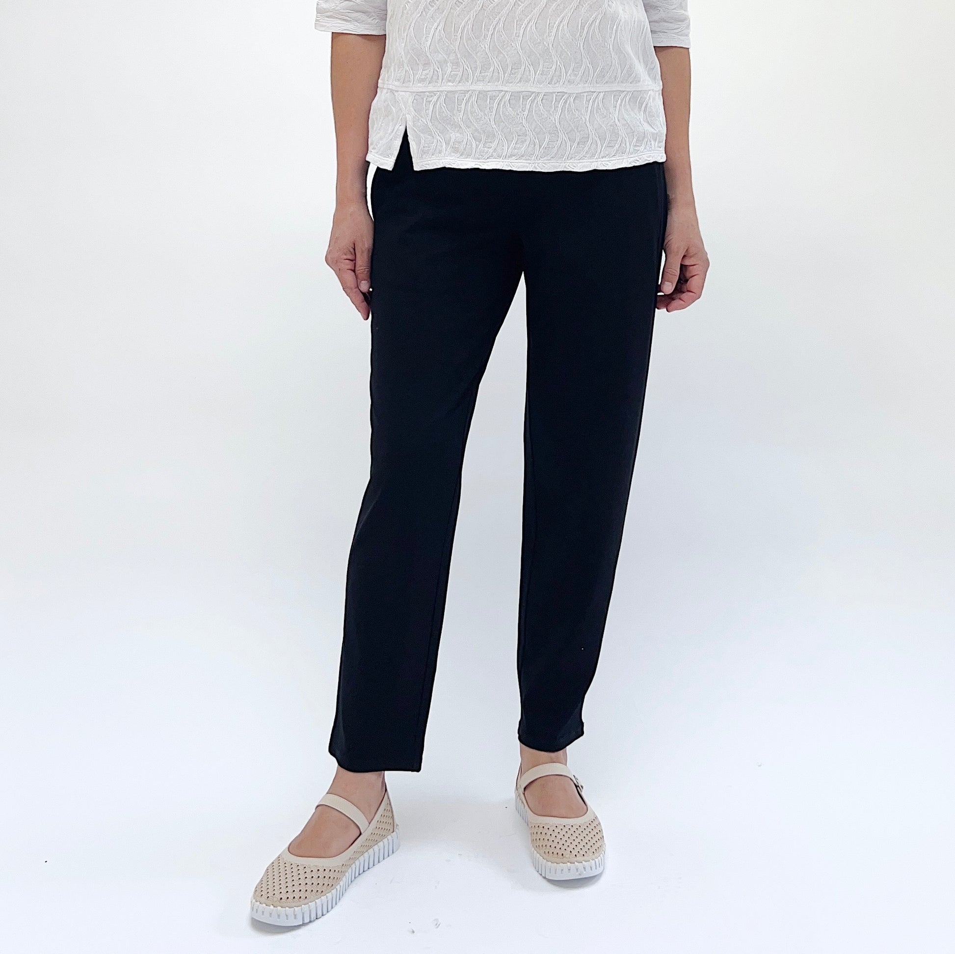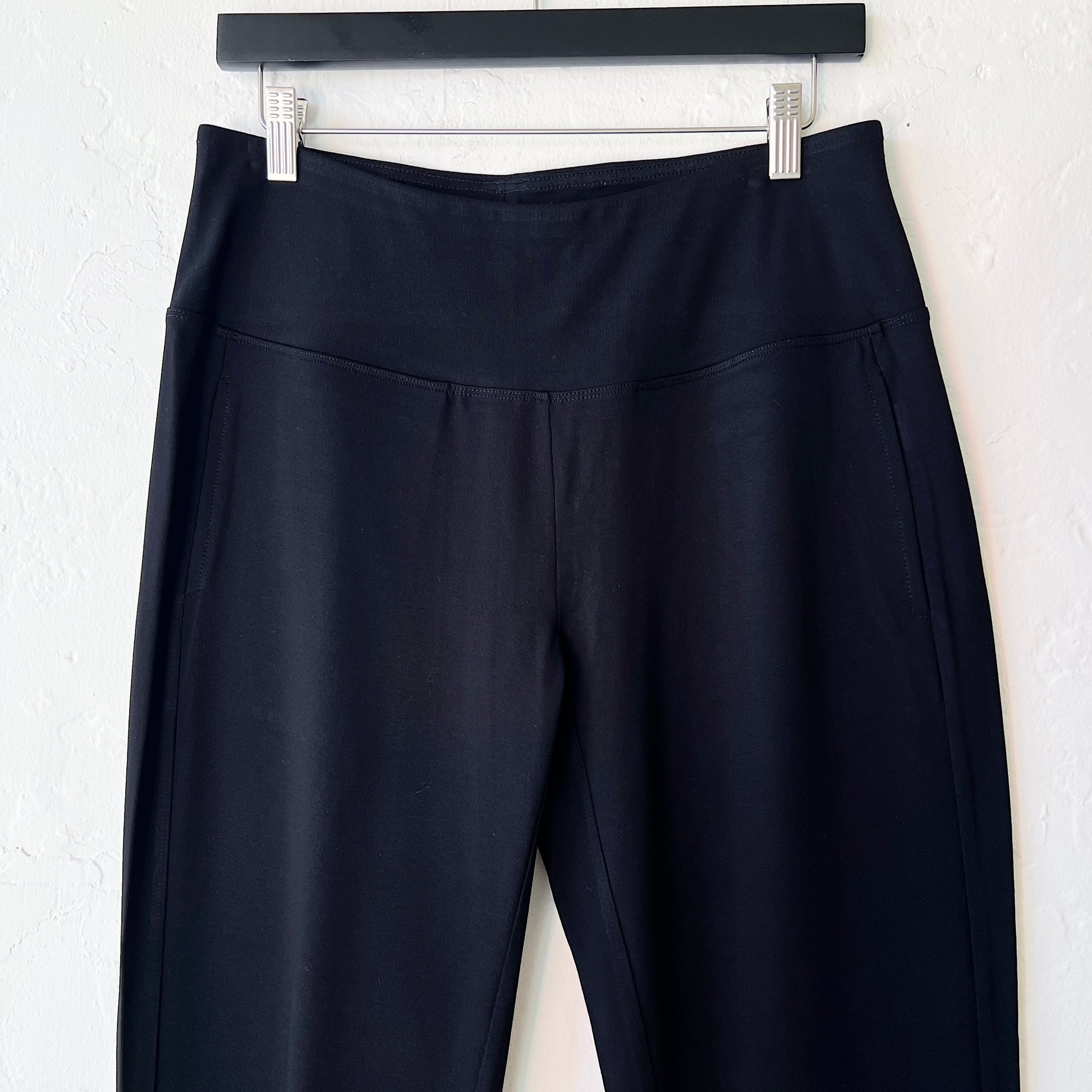 Feel comfy, look polished! The throw in your suitcase travel ready solution. The knit alternative to your structured black pant. The pockets are cleverly placed in the slightly forward side seams. The contour waist band is forgiving and slimming. We recommend sizing down one size from your normal size in this style.
