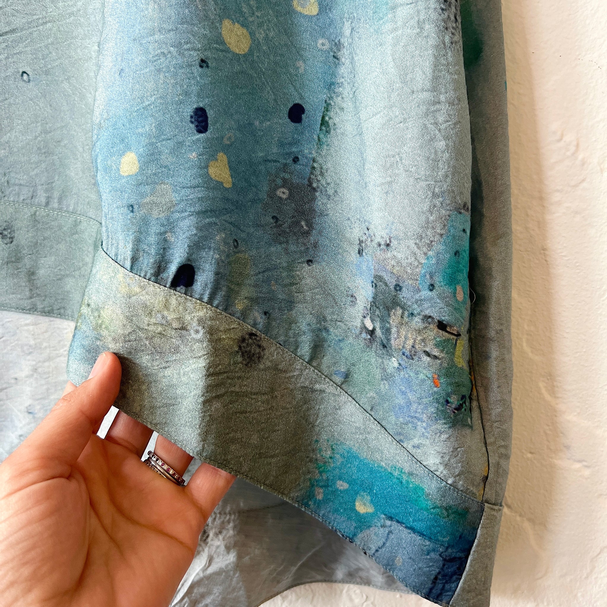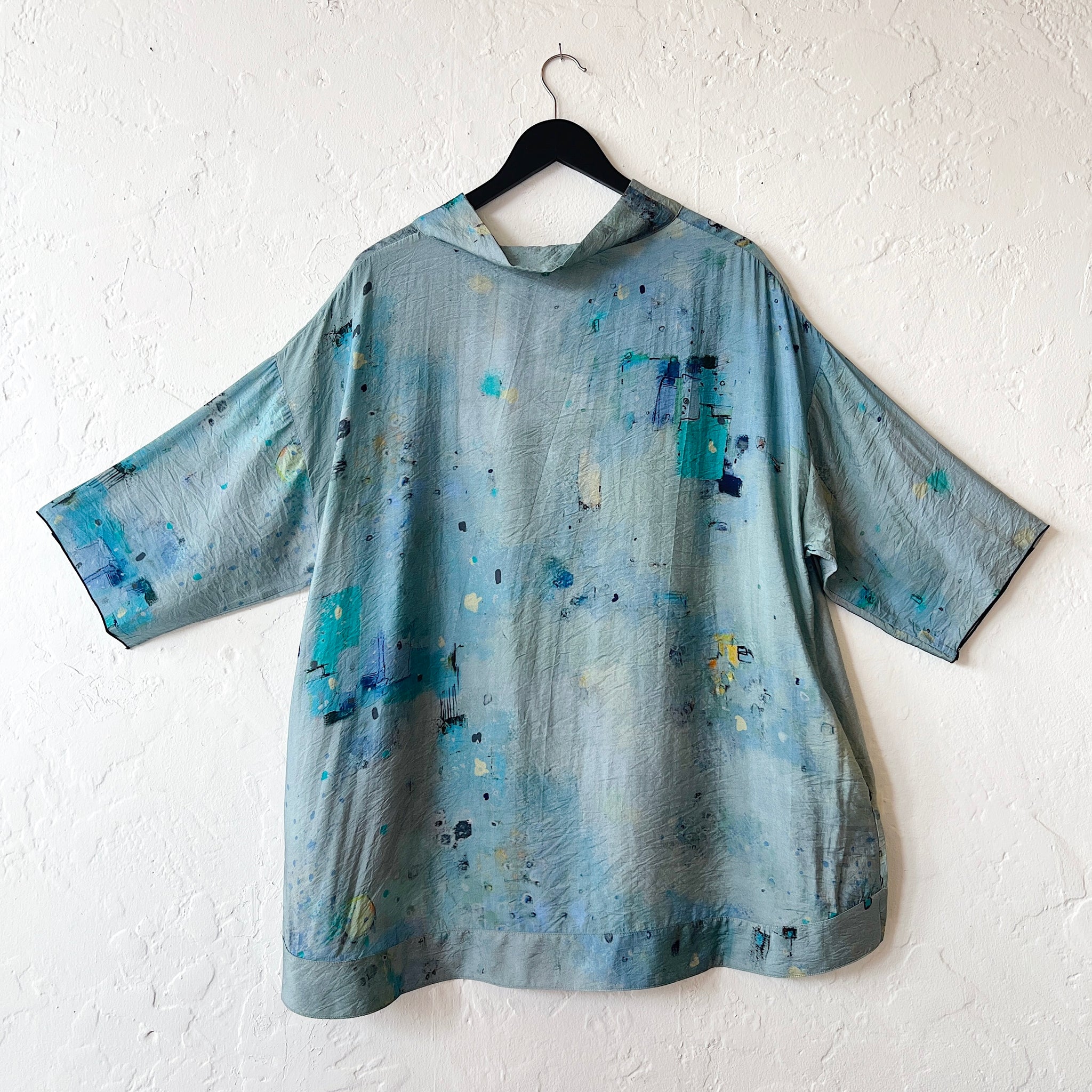 Cropped Sleeve Cowl Neck Blouse in Sky