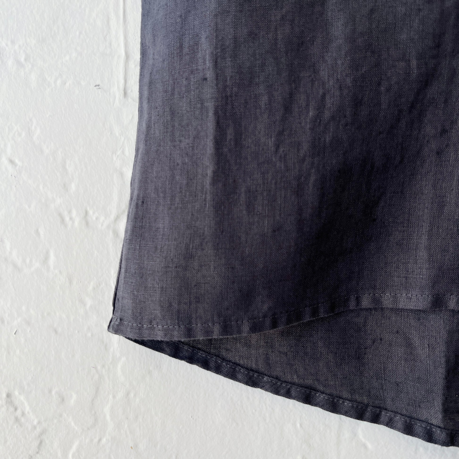 The perfect chic and easy linen tee with a high-low hem from front to back and a flattering boatneck. Gull is a dark charcoal color.