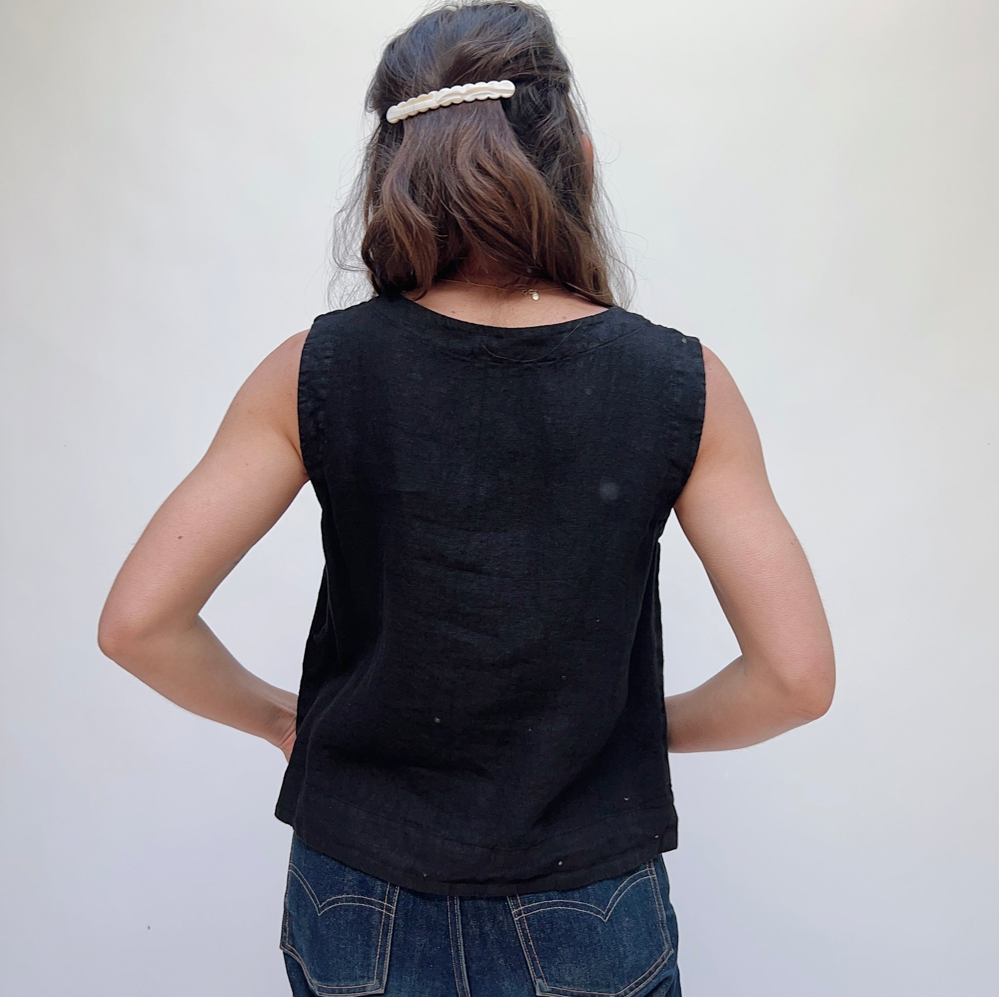Linen Button Down Tank in Black
