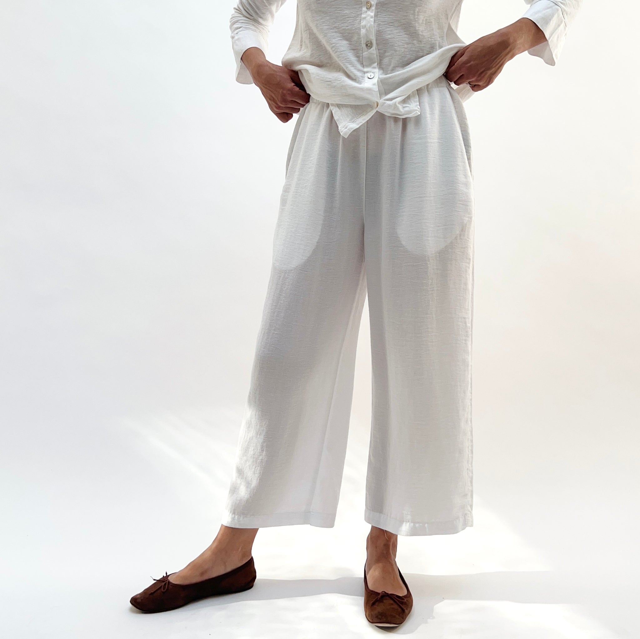 Eleven Stitch | Crinkle Travel Summer Crop Pant in Chalk