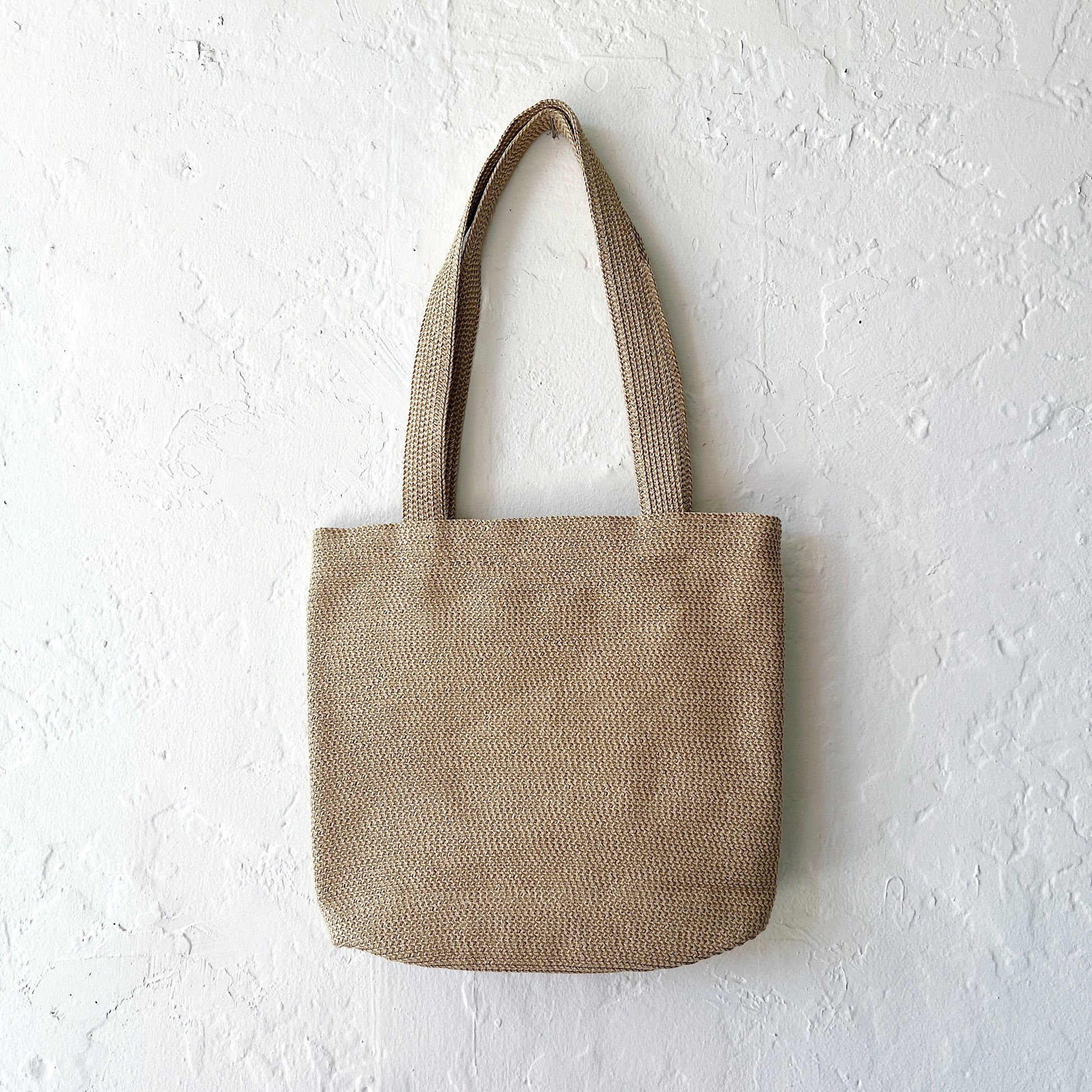 58% poly/42% paper, zipper, med. bag, satin lining.