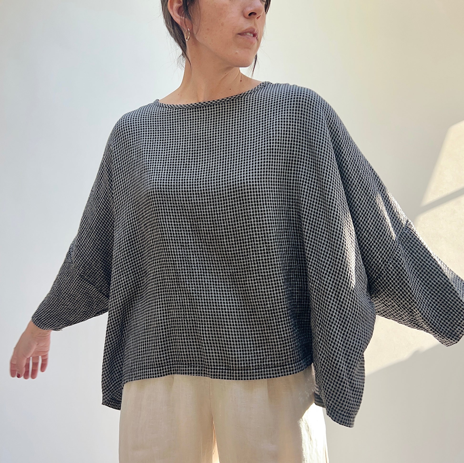 One Size Crop Top in Black Mini Crinkle Check