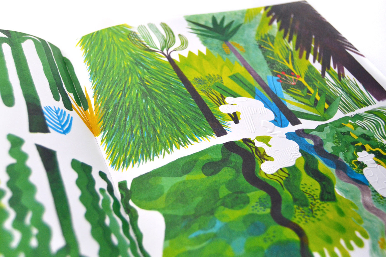 A lyrical book about the adventure of life, The Forest is also a magnificent visual work, both painterly and a technical feat of paper engineering. Here, sensory experience and the textures of the material world are rendered through die-cuts, embossing, cutouts, and two gatefolds.